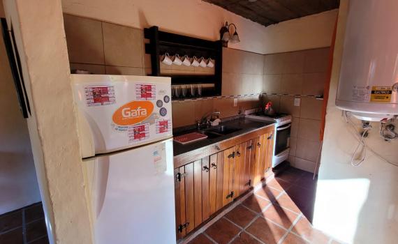 Cabaña de 3 ambientes en planta baja, para 5 personas. 2 dormitorios.