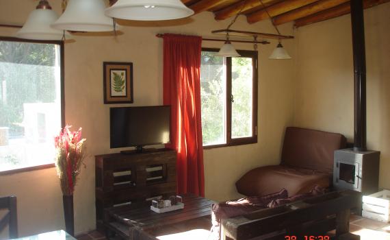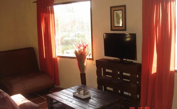 Ventanales al oeste y al sur. Cuenta con 2 habitaciones, una matrimonial y otra con 1 cama marinera y 1 individual (3 en total). Living comedor. Heladera con freezer. Salamandra a leña. Termotanque eléctrico. DirecTV. Wifi. Cocina equipada.